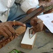 The first step involves hand-carving a block of wood. The type of wood being carved varies by region. Popularly used in India are Teak, Sycamore, and Pear wood.